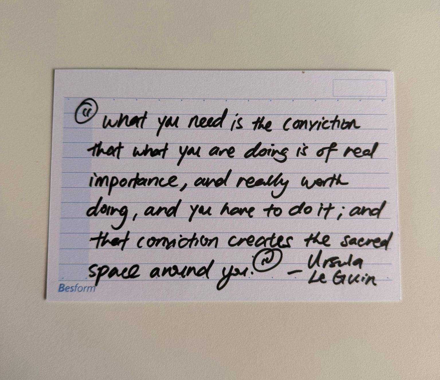 It had roughly three dozen words scribbled in black Pilot marker. I can’t remember when I wrote it, but it was a quote by the great sci-fi novelist, Ursula Le Guin.